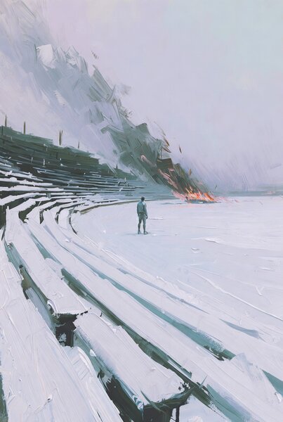 Y en una ciudad llamada Verona — en la península en forma de bota, en la cálida región meridional del Pacto Continental — los habitantes celebraron una ceremonia de apertura de lo que llaman los Juegos Paralímpicos de Invierno: una competición en la que atletas con cuerpos dañados o diferentes compiten en deportes practicados sobre hielo y nieve. Las naciones en guerra siguen enviando atletas. Las naciones que se desmoronan siguen colgando sus banderas. Es uno de los rituales más conmovedores de la especie, esta insistencia en que la competición puede existir junto a la catástrofe, en que una carrera montaña abajo puede compartir semana con un bombardeo.