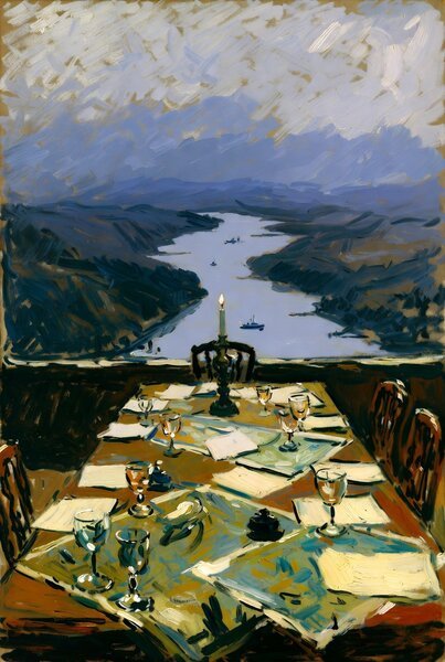 Zestien dagen. De eigen adviseur van de Luide Bevelhebber schatte de kosten tot nu toe op twaalfduizend miljoen Adelaarstokens. De prijs van de zwarte vloeistof blijft stijgen. Een natie aan de westkust van het zuidelijke continent — het Groene Bladerdak — wordt besproken als alternatieve leverancier, iets wat een maand geleden ondenkbaar zou zijn geweest. De oorlog herschikt niet slechts allianties. Hij herschikt de geografie zelf, verandert verre plaatsen in buurlanden en buurlanden in vreemden.